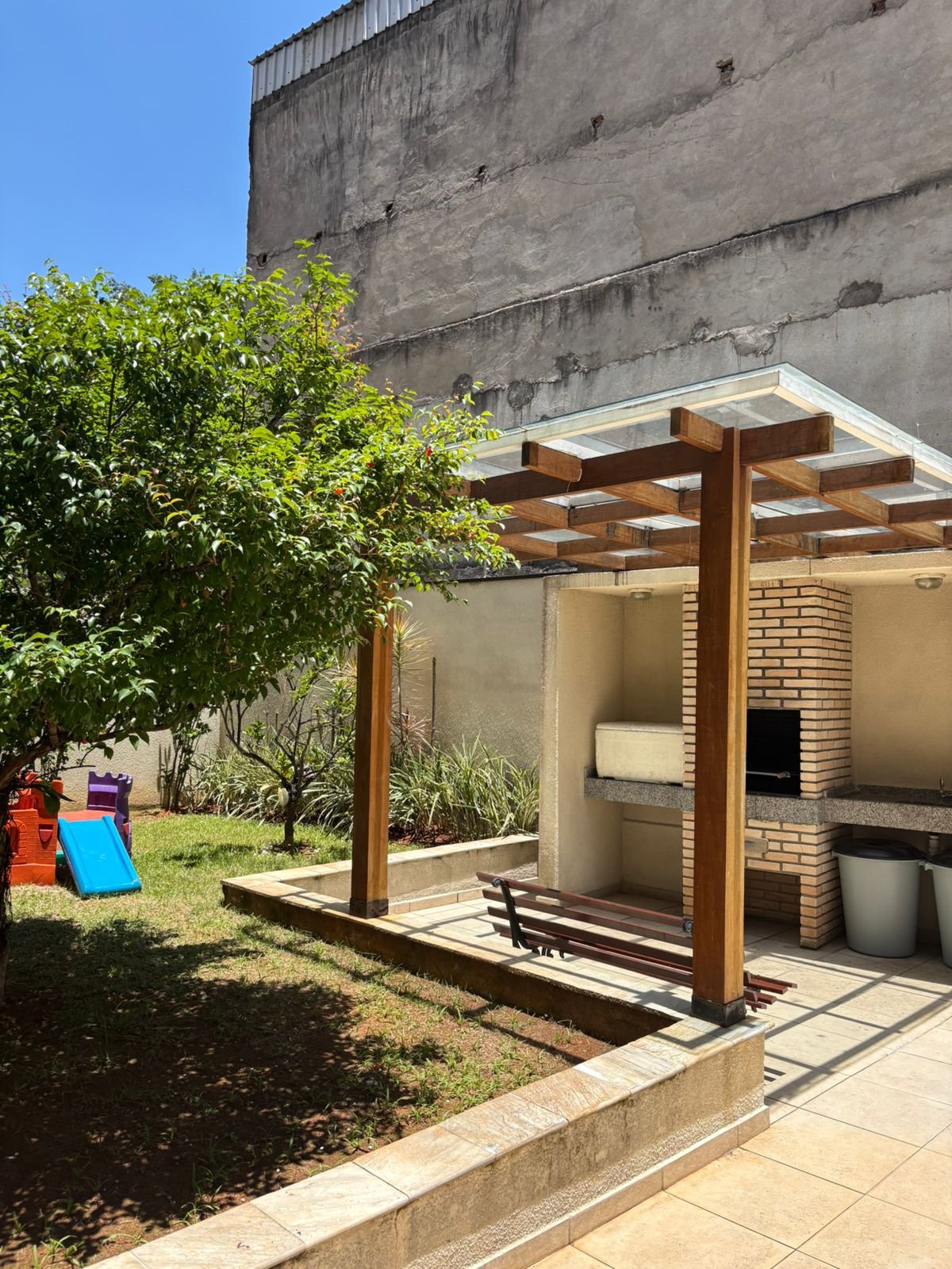 O condomínio possui estrutura simples e funcional, com portaria e elevador, atendendo perfeitamente às necessidades de quem busca comodidade e segurança.