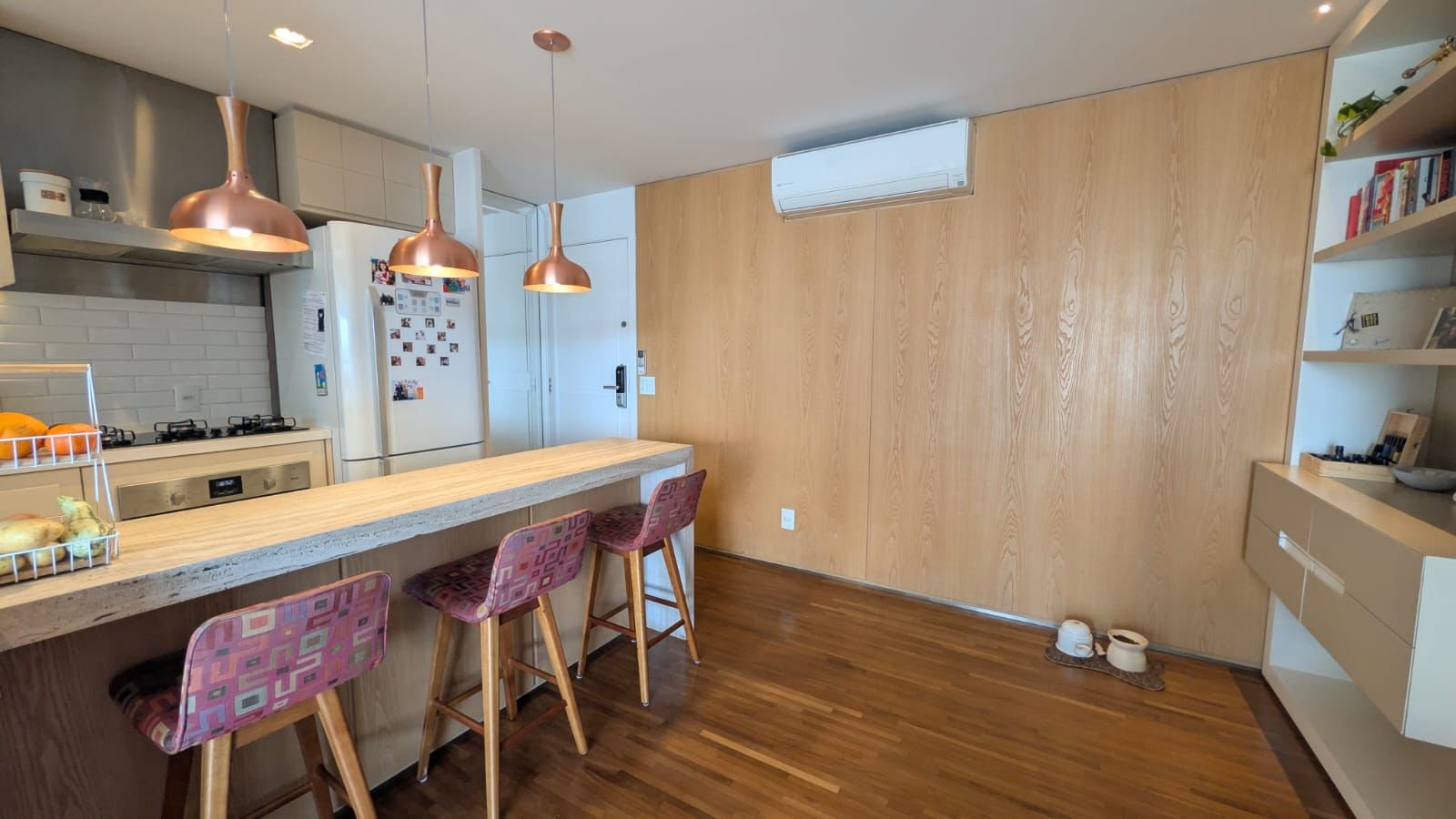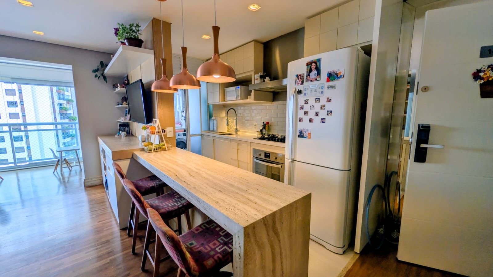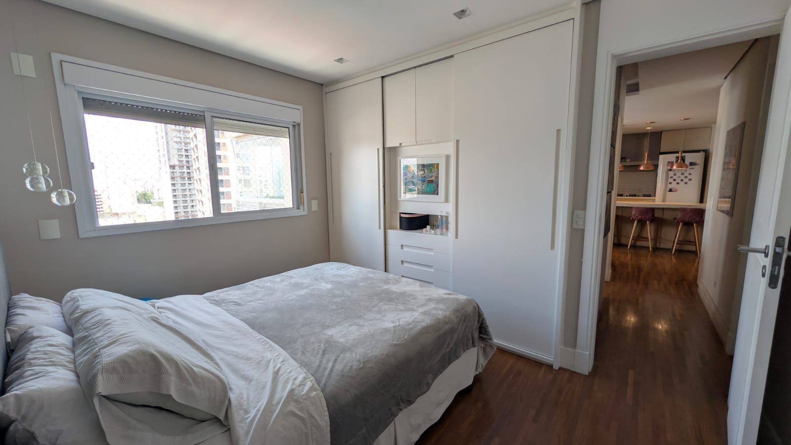 Apartamento impecável totalmente mobiliado e pronto para morar. O imóvel oferece dois dormitórios, sendo uma suíte, dois banheiros e uma vaga de garagem fixa. A varanda gourmet com churrasqueira a gás amplia os espaços de convivência. Enquanto os acabamentos de alto padrão, como piso de madeira natural, mármore travertino e marcenaria planejada com acabamento em laca, revelam cuidado em cada detalhe. O apartamento conta ainda com ar-condicionado Fujitsu na sala e nos quartos, além de todos os eletrodomésticos e mobiliário essenciais, permitindo uma mudança imediata com total conforto. O condomínio dispõe de lazer completo, segurança e infraestrutura moderna, ideal para quem busca praticidade e qualidade de vida. A localização é estratégica, próxima aos polos corporativos da Berrini e Chucri Zaidan, com fácil acesso às avenidas Santo Amaro, Bandeirantes, Roberto Marinho e Marginal Pinheiros, além de ampla oferta de comércio e serviços. Uma oportunidade exclusiva para viver com conforto, sofisticação e conveniência no Brooklin.