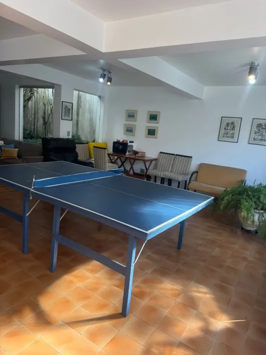 O imóvel conta com garagem para até seis carros e um salão de jogos perfeito para momentos de lazer em família.